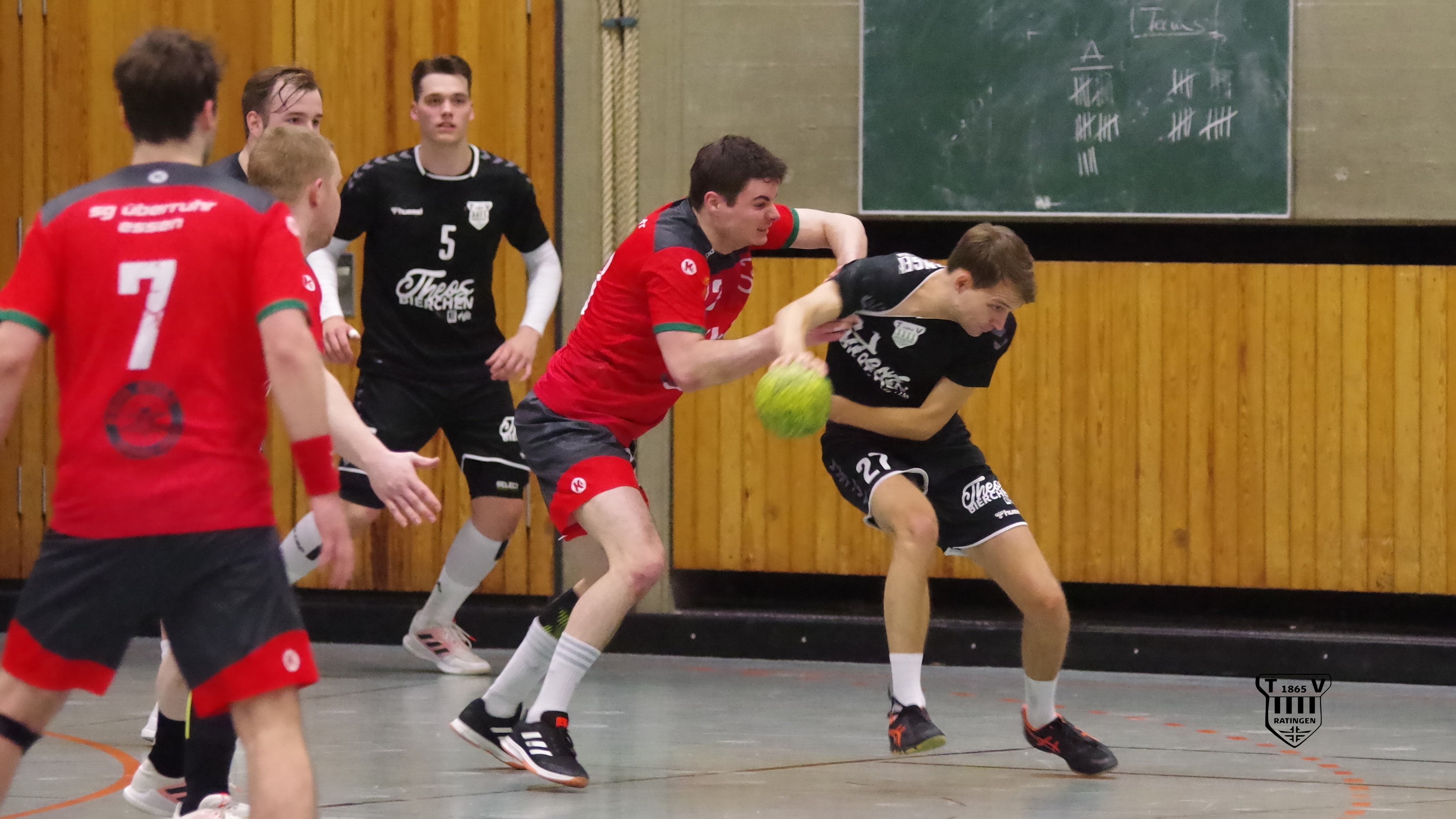 Nach der Halbzeit wurde weiter guter Handball gespielt: Nach Toren von Lars Friedrichs und dem gut aufgelegten Peter Remke konnte der Gegner weiter auf Distanz gehalten werden (15:19 – 38.min). Im Anschluss wurden jedoch mehrfach klare Tormöglichkeiten nicht genutzt, so dass die aufopferungsvoll kämpfenden Essener Oberwasser bekamen. In der 49. Minute kassierten die Herren des TVR folgerichtig den Ausgleich zum 20.20. In den letzten 10 Minuten der Partie lieferte man sich einen Abnutzungskampf mit der Essener Mannschaft. Jonas Oberwinter und Lars Friedrichs warfen dann zweieinhalb Minuten vor Ende der Partie einen zwei-Tore-Vorsprung zum 22:24 heraus, welchen der Gastgeber prompt wieder zum 23:24 verkürzte. Das Tor Vorsprung konnte man mit viel Dusel ins Ziel retten. Die Punkte wurden sich jedoch redlich verdient.